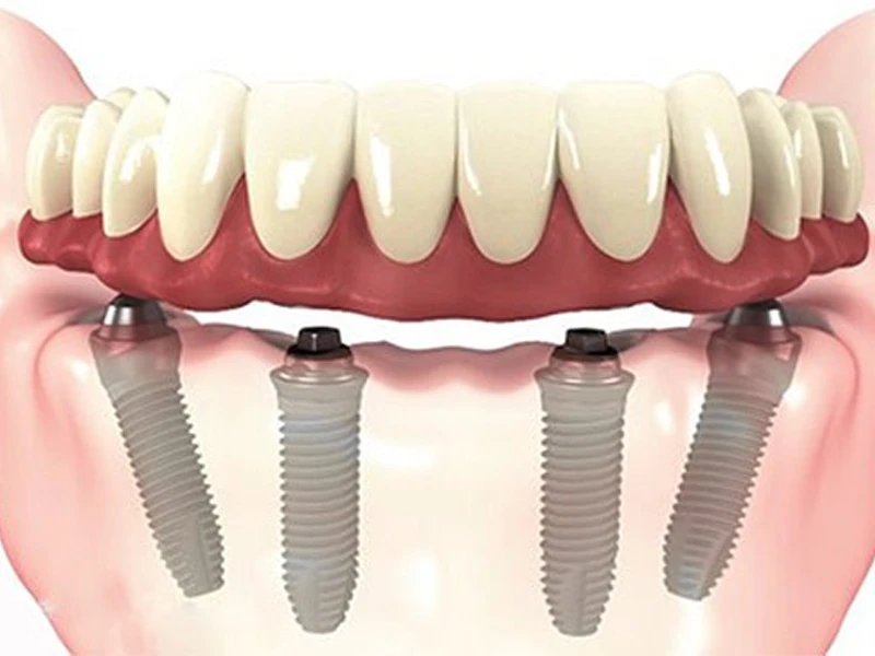 Próteses que se fixam aos implantes para restaurar completamente a mastigação, fala e aparência.