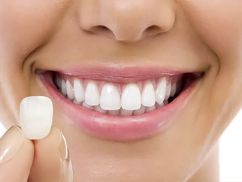 Lâminas ultrafinas de porcelana aplicadas sobre os dentes para corrigir forma, cor e pequenos desalinhamentos.