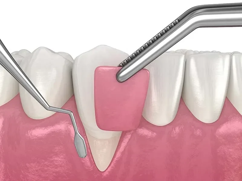 Técnicas que corrigem retrações gengivais, protegendo as raízes expostas e melhorando a estética do sorriso.