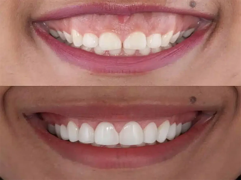 Correção dos espaços entre os dentes por meio de técnicas estéticas modernas, devolvendo alinhamento e equilíbrio ao sorriso.