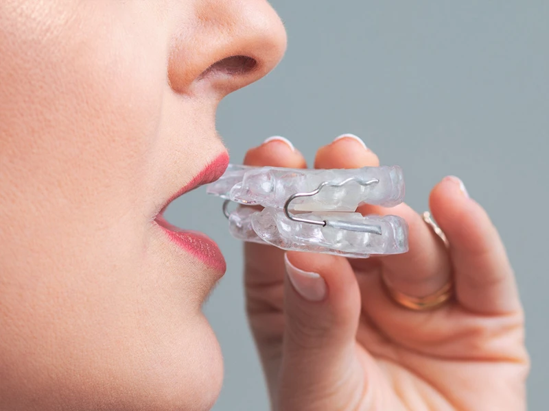 Tratamento indicado para pacientes com ronco e apneia do sono, utilizando aparelho intraoral que melhora a respiração e a qualidade do sono.